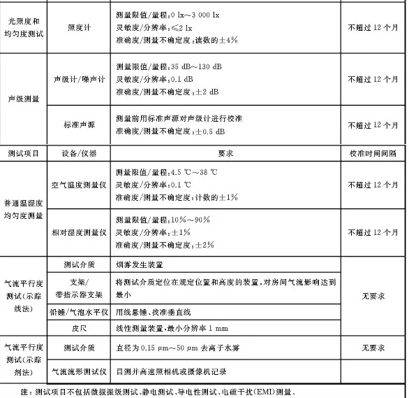 粒子計(jì)數(shù)器要求濃度誤差為+-20%,采樣探頭配管不得超過8 m,校準(zhǔn)周期不超過12個(gè)月